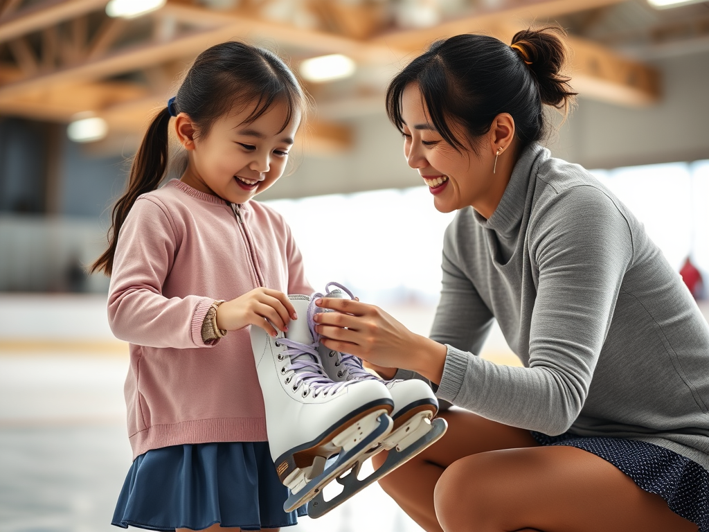 스케이트 끈을 묶고, 날 상태를 확인하고, 옷 갈아입는 걸 도와주는 것도 엄마의 몫.
